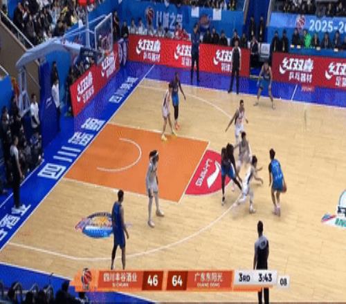 杜锋叫出暂停紧急换回徐杰,萨林杰低位强攻加克拿到广东本节第一分,庞兹压哨抛投,胡明轩接林杰助攻飚进底角三分,段睿骐强突张皓嘉打进上篮,庞兹抛投再进,四川6-5再一次打停广东。